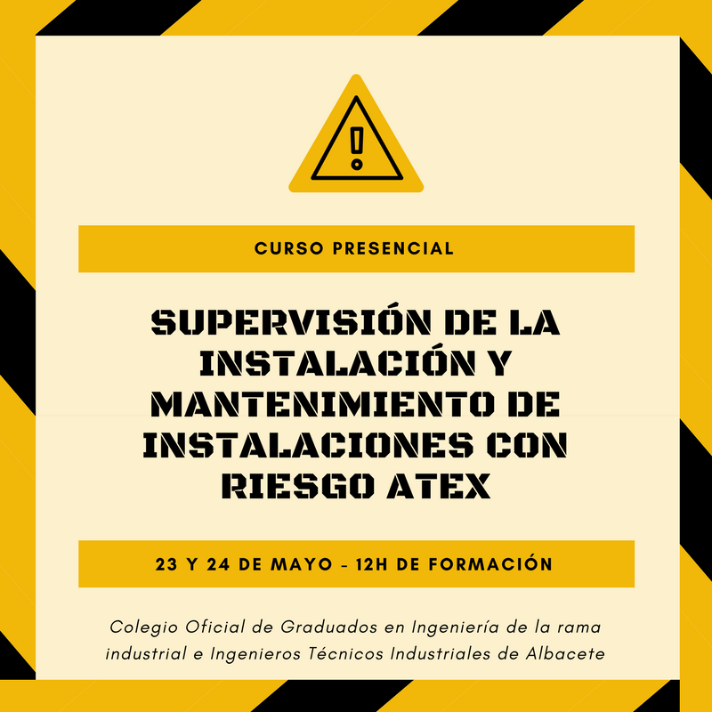 COGITI Albacete tiene previsto celebrar este curso, impartido por SGS, con el que se pretende transmitir a los asistentes los conocimientos fundamentales para el trabajo de mantenimiento preventivo y correctivo en zonas clasificadas con riesgos de ATEX.