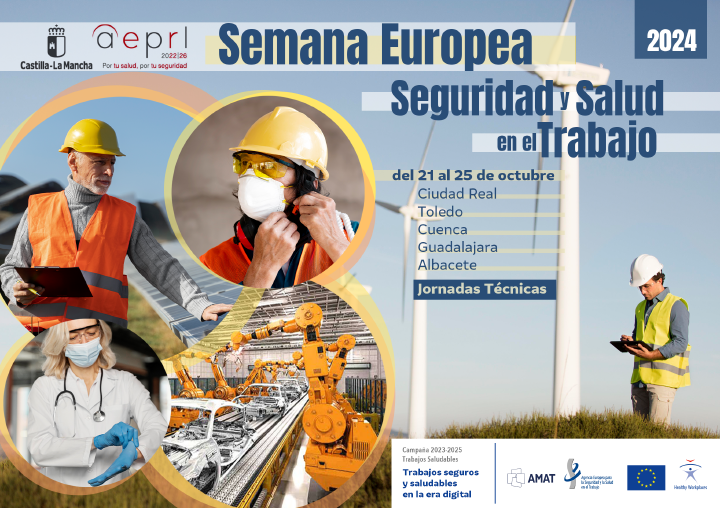 Con motivo de la celebración de la Semana Europea de Seguridad y Salud en el Trabajo, en el marco de la Campaña “Trabajos seguros y saludables en la era digital 2023-2025”, la Consejería de Economía, Empresas y Empleo, en colaboración con AMAT-CLM, Asociación de mutuas colaboradoras con la Seguridad Social, ha organizado un calendario de 5 jornadas técnicas que tendrán lugar del próximo lunes 21 al viernes 25 en distintos puntos de Castilla-La Mancha y por internet.