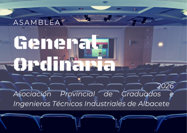 De acuerdo con lo previsto en los Estatutos de la Asociación Provincial de Graduados e Ingenieros Técnicos Industriales de Albacete, por el presente te convoco a la Asamblea General Ordinaria que tendrá lugar el próximo día 26 de marzo (jueves), a las 21:00 horas en primera convocatoria y a las 21:30 horas en segunda y…