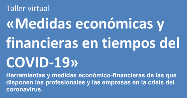 13 de Mayo de 2020 ACTUALIZACIÓN NUEVA EDICIÓN Se ha organizado una nueva edición de la formación práctica: TALLER VIRTUAL “MEDIDAS ECONOMICAS Y FINANCIERAS EN TIEMPOS DEL COVID-19” con impartición el próximo miércoles 27 de mayo de 2020 (de 16:00 a 18:00 horas). Se trata de una formación que puede ser de interés a Colegiados…