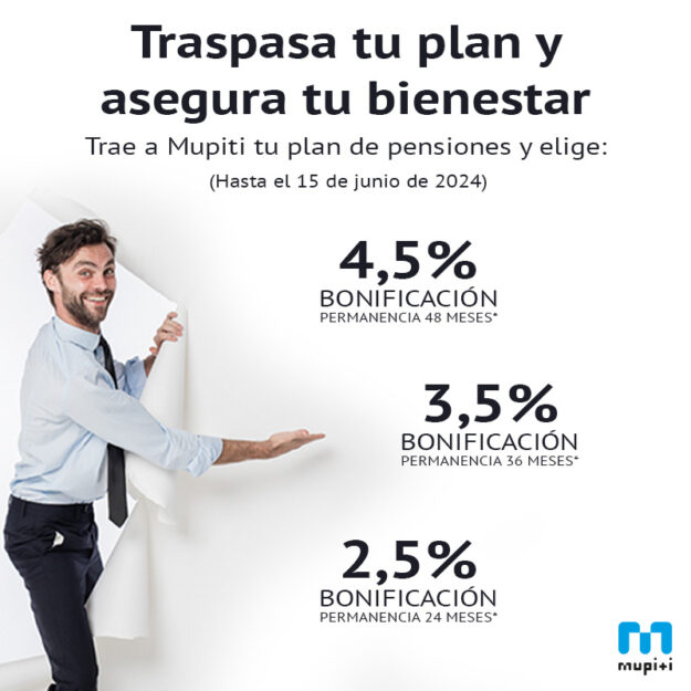 MUPITI nos comunica su nueva Promoción de Primavera 2024 Estará activa del 1 de mayo de 2024 al 15 de junio de 2024, o hasta que el total de los traspasos recibidos alcancen 1,5 millones de euros. Los traspasos de otros planes de pensiones al PPA de Mupiti, a partir de 1.000 euros, se bonificarán…
