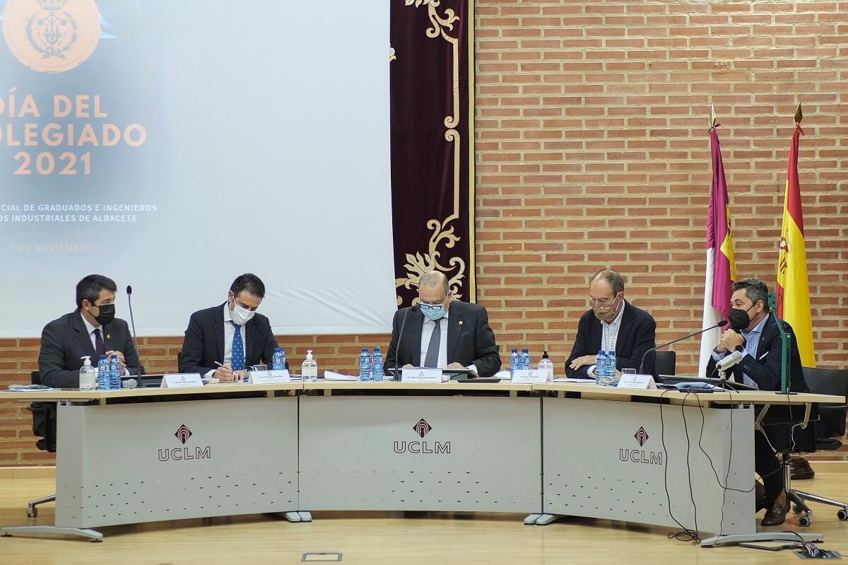 El pasado viernes, 5 de noviembre, tuvieron lugar en el Aula Magna del Edificio Melchor de Macanaz del Campus de la UCLM en Albacete, los actos institucionales de celebración del Día del Colegiado y la Profesión de Ingeniero Técnico Industrial, retomados tras el parón de 2020 ocasionado por la pandemia.