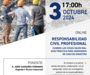 ALKORA ha organizado este Webinar dirigido a ingenieros y profesionales del sector. Programación Hora: 17:00 h. Fecha: 3 de octubre de 2024 Webinar Online. La asistencia se realizará a través de enlace que se facilitará previamente a su celebración. Contenidos de la charla El siniestro y el perito: Tareas del perito, colaboración con el asegurado, … Sigue leyendo [CHARLA GRATUITA ONLINE] Cuando las cosas salen mal: Guía práctica para ingenieros en caso de siniestro