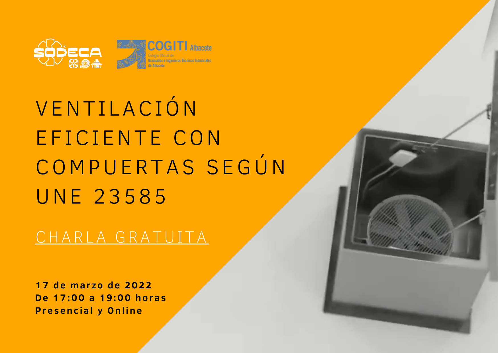 COGITI Albacete juntamente con la colaboración de SODECA, ha organizado esta charla gratuita con la que se ofrece la posibilidad de profundizar en nuevos conceptos sobre control de humos de incendio y eficiencia energética en ventilación.