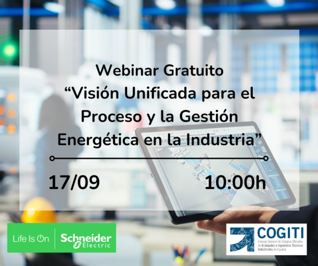 Continuando con el ciclo «Los miércoles tecnológicos», realizados por COGITI y Schneider Electric, el próximo miércoles 17 de septiembre de 2025 a las 10:00 a.m., tendrá lugar el Webinar Gratuito «Visión Unificada para el Proceso y la Gestión Energética en la Industria». Durante la jornada, los/as asistentes podrán descubrir cómo diseñar proyectos industriales más sostenibles,…