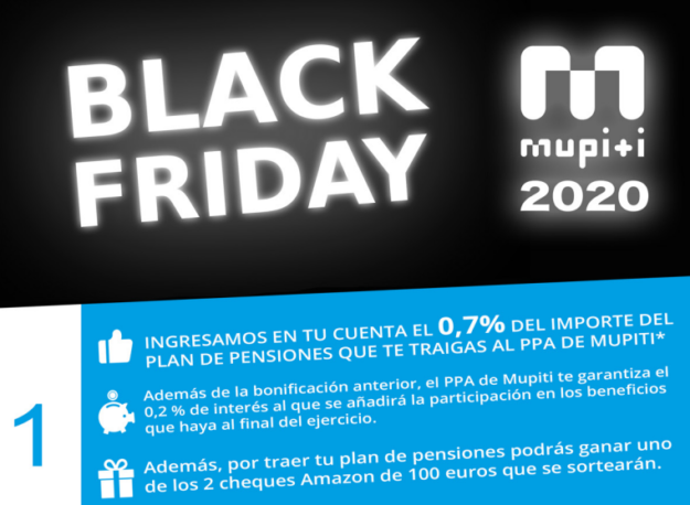 Desde Mupiti ponen el marcha el Black Friday con dos promociones exclusivas para el viernes 27 de noviembre de 2020. PROMOCIÓN 1 INGRESAMOS EN TU CUENTA EL 0,7% DEL IMPORTE DEL PLAN DE PENSIONES QUE TE TRAIGAS AL PPA DE MUPITI* Adicionalmente al regalo promocional, el PPA de Mupiti te garantiza el 0,2 % de…