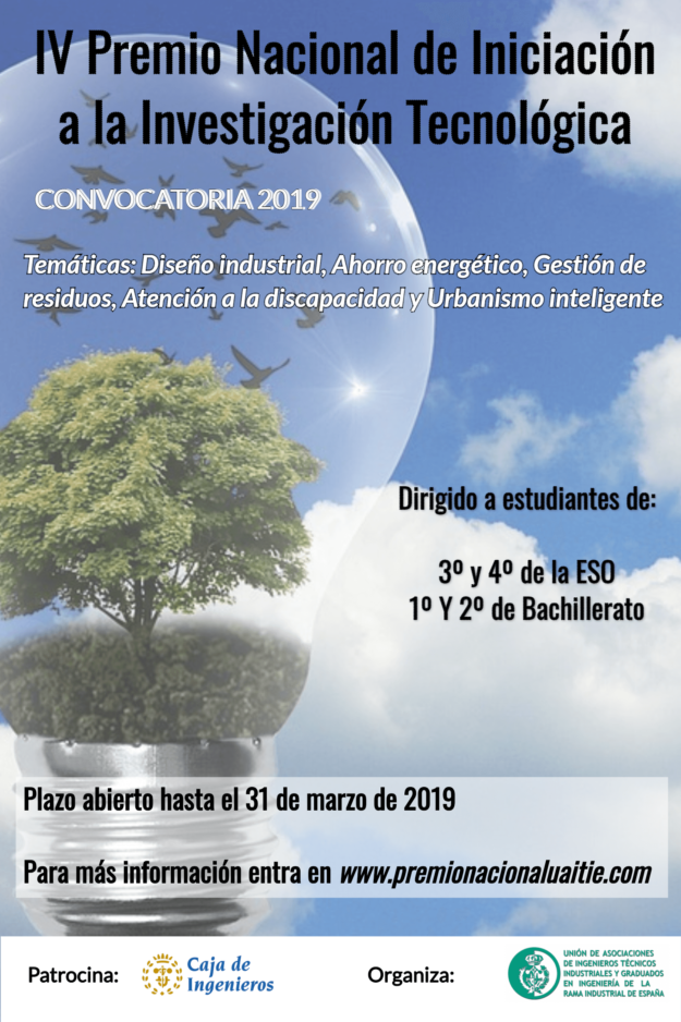 Leer másLa Convocatoria 2019 del Premio Nacional de Iniciación a la Investigación Tecnológica se pone en marcha y conmemora la 4ª edición de este Concurso La Unión de Asociaciones de Ingenieros Técnicos Industriales y Graduados en Ingeniería de la rama industrial de España, (UAITIE), continúa firme en su propósito de contribuir a reducir la carencia de…