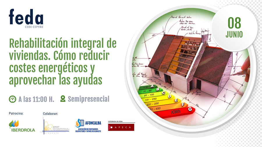 FEDA, con la Asociación de Empresarios de la Construcción (APECA), la Asociación de Instaladores (APIET) y la Asociación de Fontaneros y Calefactores (AFONCALBA), y con el patrocinio de IBERDROLA, ha organizado una Jornada con el título “Rehabilitación integral de viviendas: una oportunidad para reducir costes energéticos y mejorar el confort aprovechando las ayudas”, que tendrá lugar el próximo día 8 de junio a las 11:00 horas. Esta Jornada contará con la participación de COGITI Albacete en una de las Mesas Redondas.
