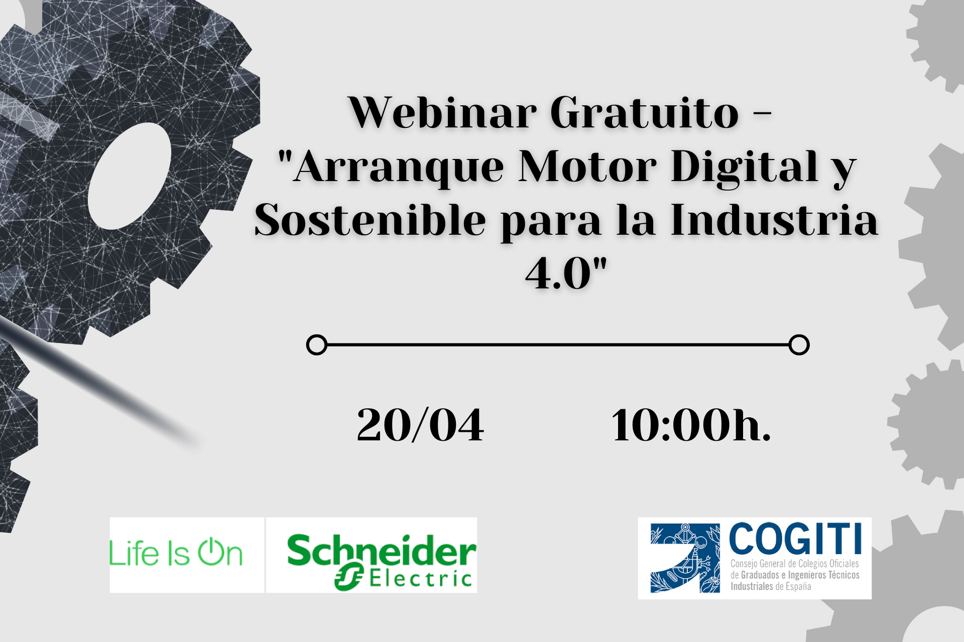 Continuando con el ciclo de Webinar mensuales “Los miércoles tecnológicos” realizados por COGITI y Schneider Electric, el próximo miércoles 20 de abril de 2022 a las 10:00 a.m., tendrá lugar el Webinar “Arranque Motor Digital y Sostenible para la Industria 4.0”.