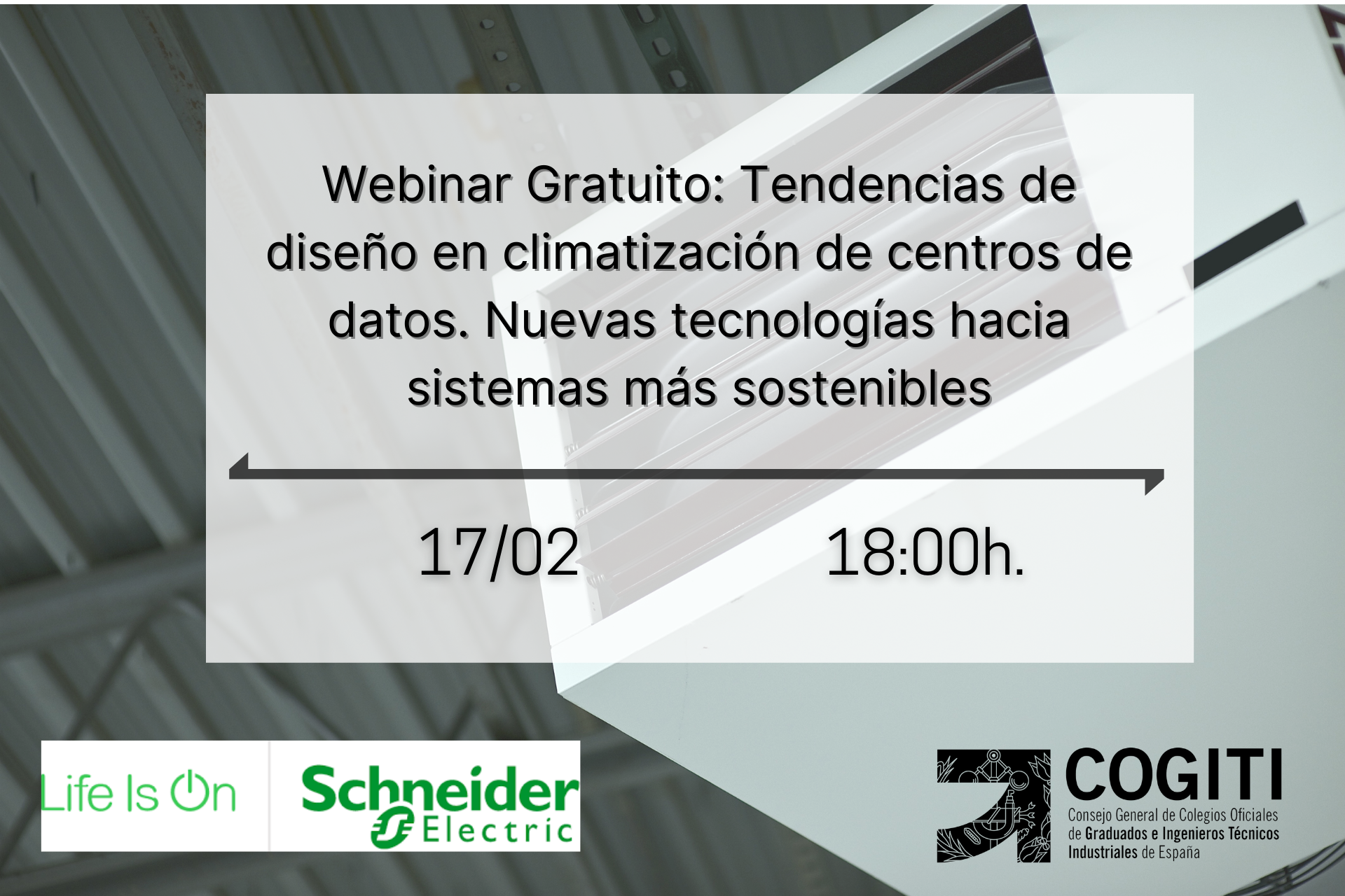 El Consejo General, los Colegios Oficiales y Schneider Electric continúan su colaboración ofreciendo un nuevo Webinar Gratuito, dentro del Plan Ingenia el Futuro, titulado “Tendencias de diseño en climatización de centros de datos: nuevas tecnologías hacia sistemas más sostenibles” Tendrá lugar el próximo miércoles 17 de febrero a las 18:00 horas.